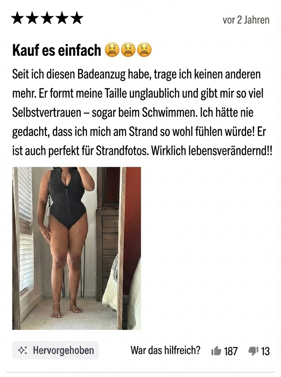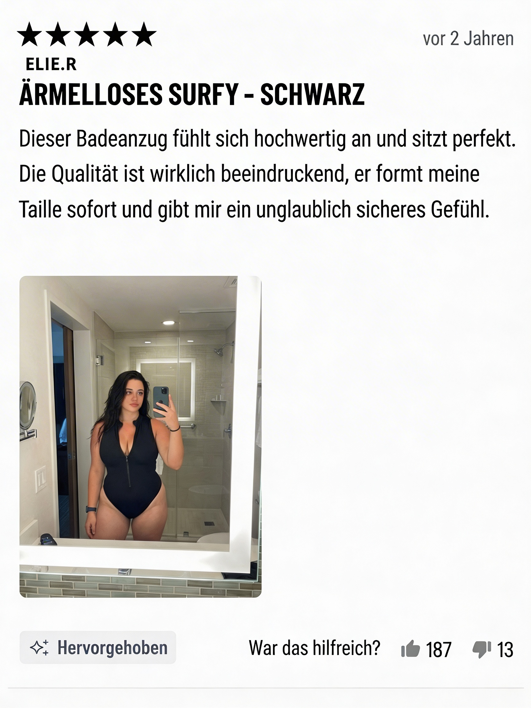 Ja! Unsere Badeanzüge wurden auch für größere Körpergrößen entwickelt und sind in verschiedenen Rumpflängen erhältlich – wir empfehlen, deine Maße zu nehmen, um die perfekte Passform zu finden. Verstellbare Träger sorgen für zusätzlichen Komfort und eine individuelle Anpassung, ideal für Frauen, die bei klassischen Badeanzügen oft ein Ziehen oder Unbehagen spüren.